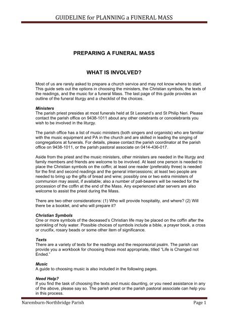 Guideline For Planning A Funeral Mass