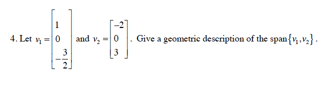 The third is geometric in nature. Alternatively if A v 1 v 2 v n then the span of the. Transcribed Image TextGive a geometric description of Span v1 v2 for the vectors12V2and v2 39.